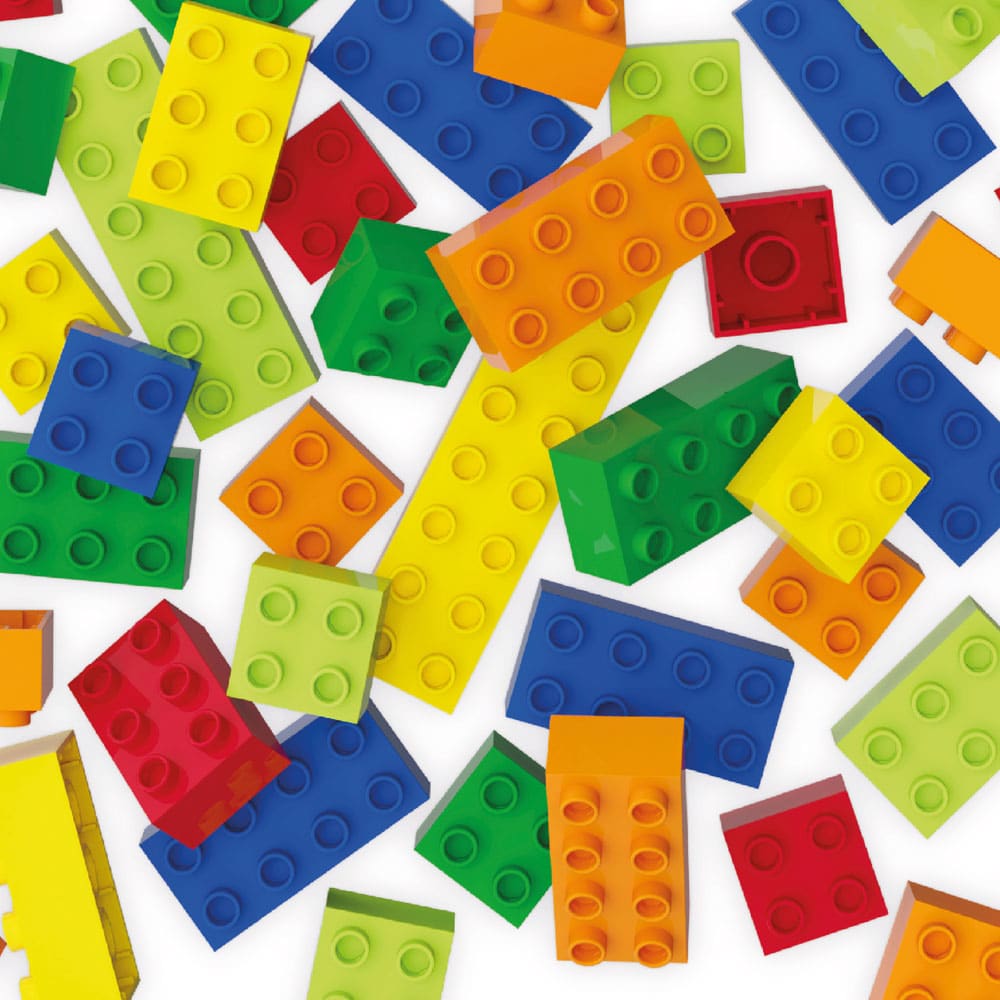 - 120 Teile (62 2x2er Bausteine, 20 2x3er Bausteine, 32 2x4er Bausteine, 4 2x6er Bausteine und 2 2x8er Baustein)
