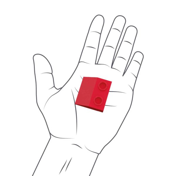 Der 4er Dachstein entspricht einem Steckraster von 2×2 Noppen.