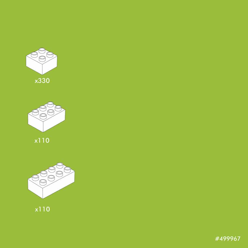 - 550 Teile (330 2x2er Bausteine, 110 2x3er Bausteine und 110 2x4er Bausteine)