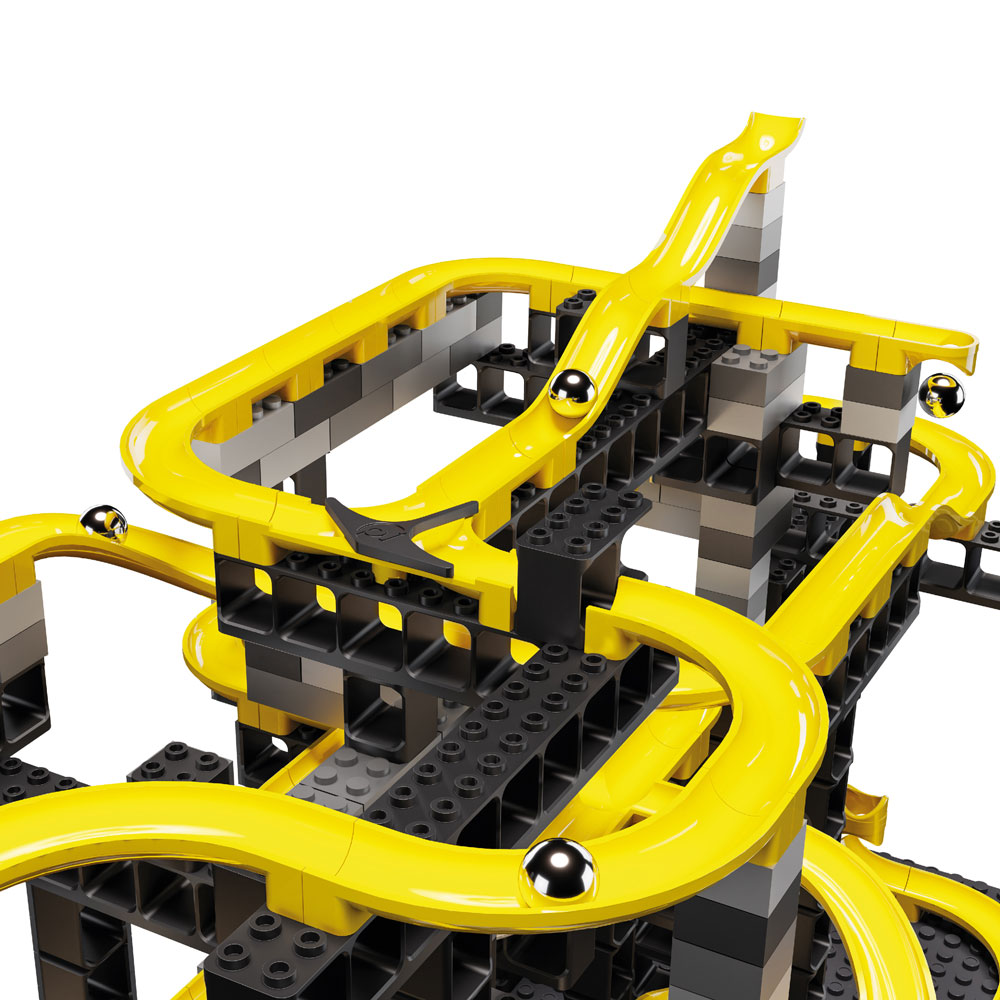 Das 141-teilige Bahnelemente-Set bietet eine vielfältige Auswahl an Bauteilen inkl. Kreuzungen und Weichen, mit denen du komplexe Kugelbahn-Konstruktionen gestalten kannst. Die Bahnelemente lassen sich flexibel mit Bausteinen anderer Hersteller kombinieren oder sinnvoll als Ergänzung und Weiterentwicklung deiner Hubelino pi Kugelbahn einsetzen.