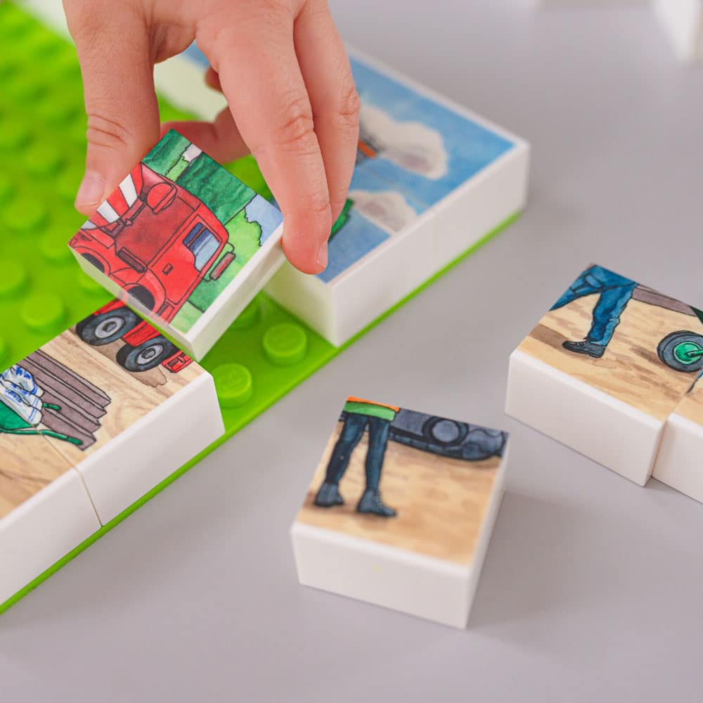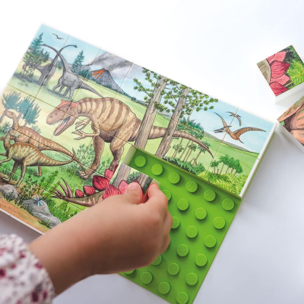 Alle Puzzleteile sind kompatibel mit gängigen Klemmbausteinen anderer Hersteller und sind durch das Steckprinzip und die handliche Größe ideal für Puzzleanfänger geeignet. Die bekannten Bausteine sind Kindern vertraut und erleichtern das Einsetzen der Puzzleteile, zusätzlich sorgt die Grundplatte für die nötige Stabilität und dient auch unterwegs oder beim Aufräumen als ideale Puzzlegrundlage.