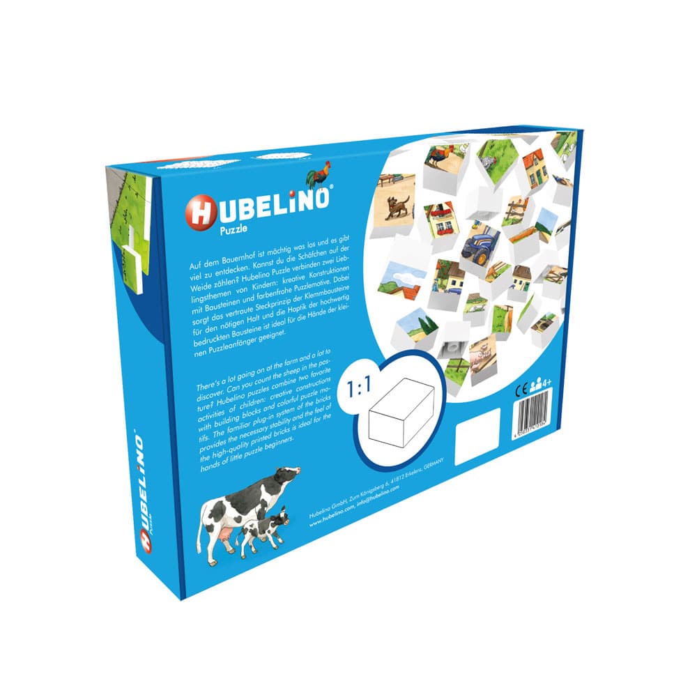 Auf dem Bauernhof ist mächtig was los und es gibt viel zu entdecken. Kannst du die Schäfchen auf der Weide zählen? Hubelino Puzzle verbinden zwei Lieblingsthemen von Kindern: kreative Konstruktionen mit Bausteinen und farbenfrohe Puzzlemotive. Dabei sorgt das vertraute Steckprinzip der Klemmbausteine für den nötigen Halt und die Haptik der hochwertig bedruckten Bausteine ist ideal für die Hände der kleinen Puzzleanfänger geeignet.