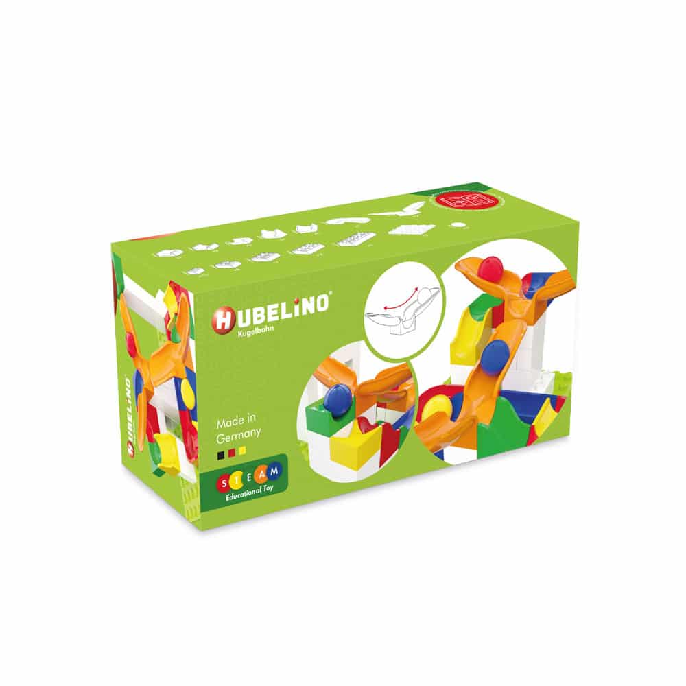 Mit der cleveren Pendel-Technik erwarten euch ab sofort unglaublich spannende Baumöglichkeiten. Niemand kann mehr vorausahnen, welchen Weg die Kugel nehmen wird. Gelangt sie von einer Schwinge direkt in die nächste oder begibt sich die Kugel auf eine rasante Abwärtsfahrt? Mit zwei Schwingen in einem Set kann die Kugel bereits vier verschiedene Richtungen einschlagen, zudem ist die 46-teilige Schwinge Erweiterung wie alle Hubelino-Produkte mit anderen Bahnen kombinierbar. Mit diesem Set lässt sich eine eigenständige kleine Schwinge-Kugelbahn bauen, den größeren Spielspaß hat man jedoch, wenn man die beiden Schwingen als Erweiterung in eine größere Kugelbahn einbaut.